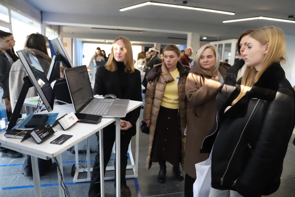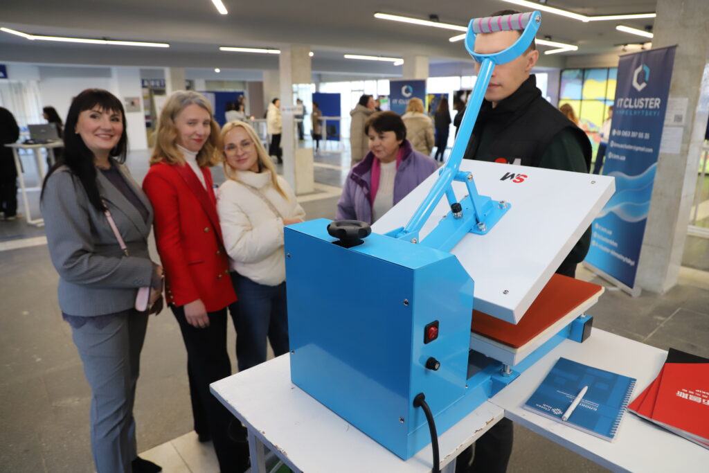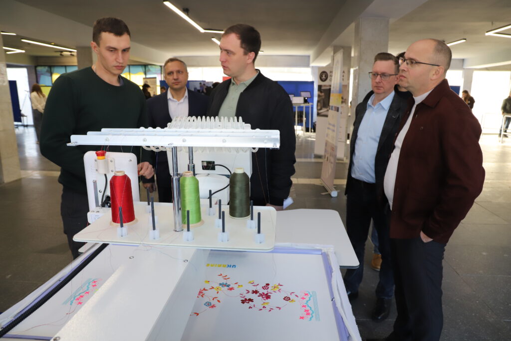 У холі університету гості мали змогу ознайомитися з десятками найсучасніших рішень: технологіями 3D-дизайну одягу та віртуальної примірки, системами автоматизації та оптимізації виробництва, інноваційними освітніми та науковими платформами.