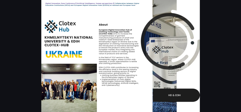 Separately, during the event, the capabilities of Clotex-HUB as an innovation hub supporting the digital transformation of enterprises, in particular in the light industry, were presented. Oksana Zakharkevych noted openness to international cooperation and interest in joint projects with European partners. Clotex-HUB's readiness to join new initiatives, exchange experience and implement innovative solutions based on artificial intelligence was emphasized.